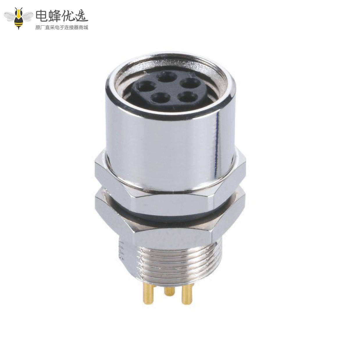 - M8, B编码, 5芯,板端插座, 母, 直头, 接PCB板, 后锁板;