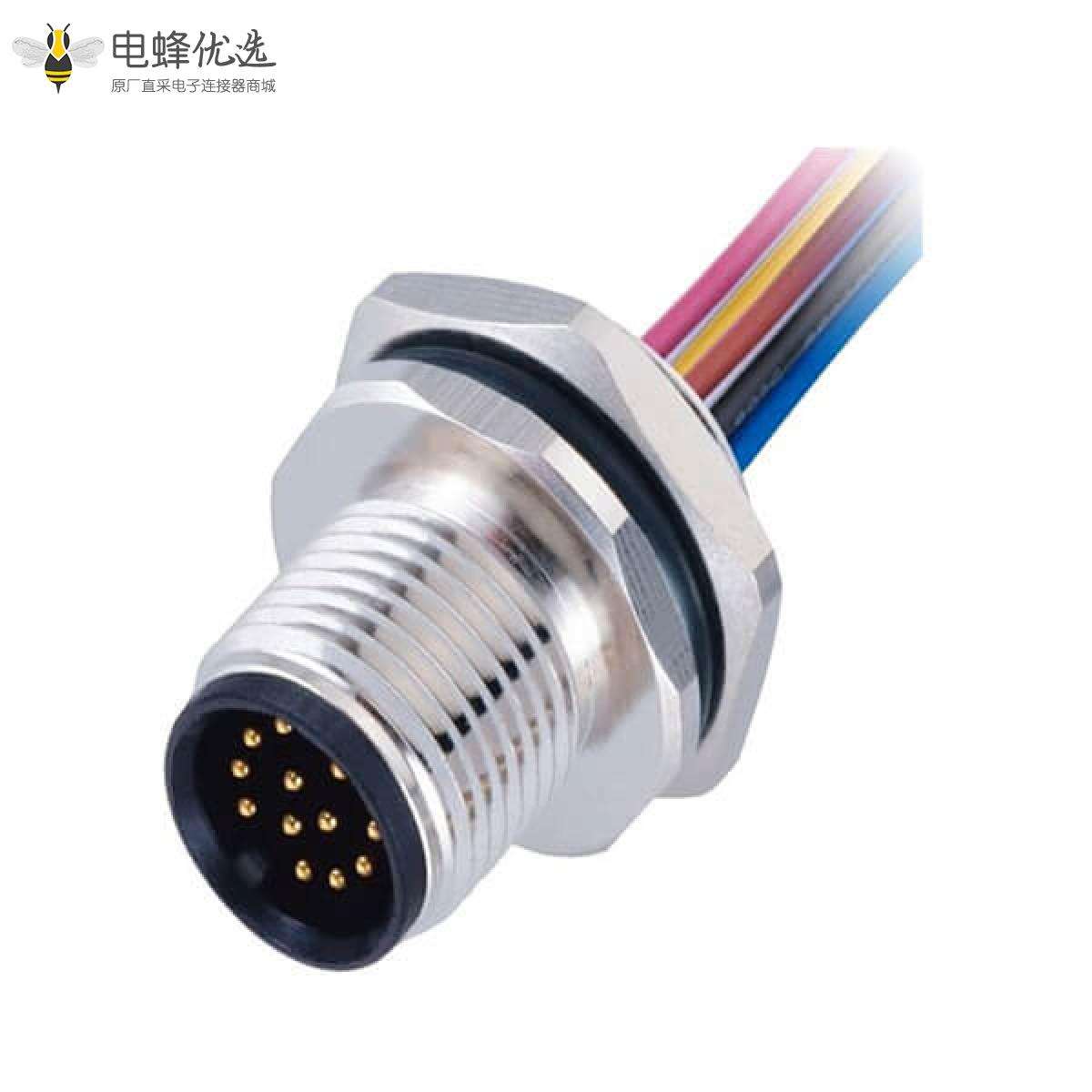M12,A 编码,板端座子,后锁板,12芯,公,直式,焊线;