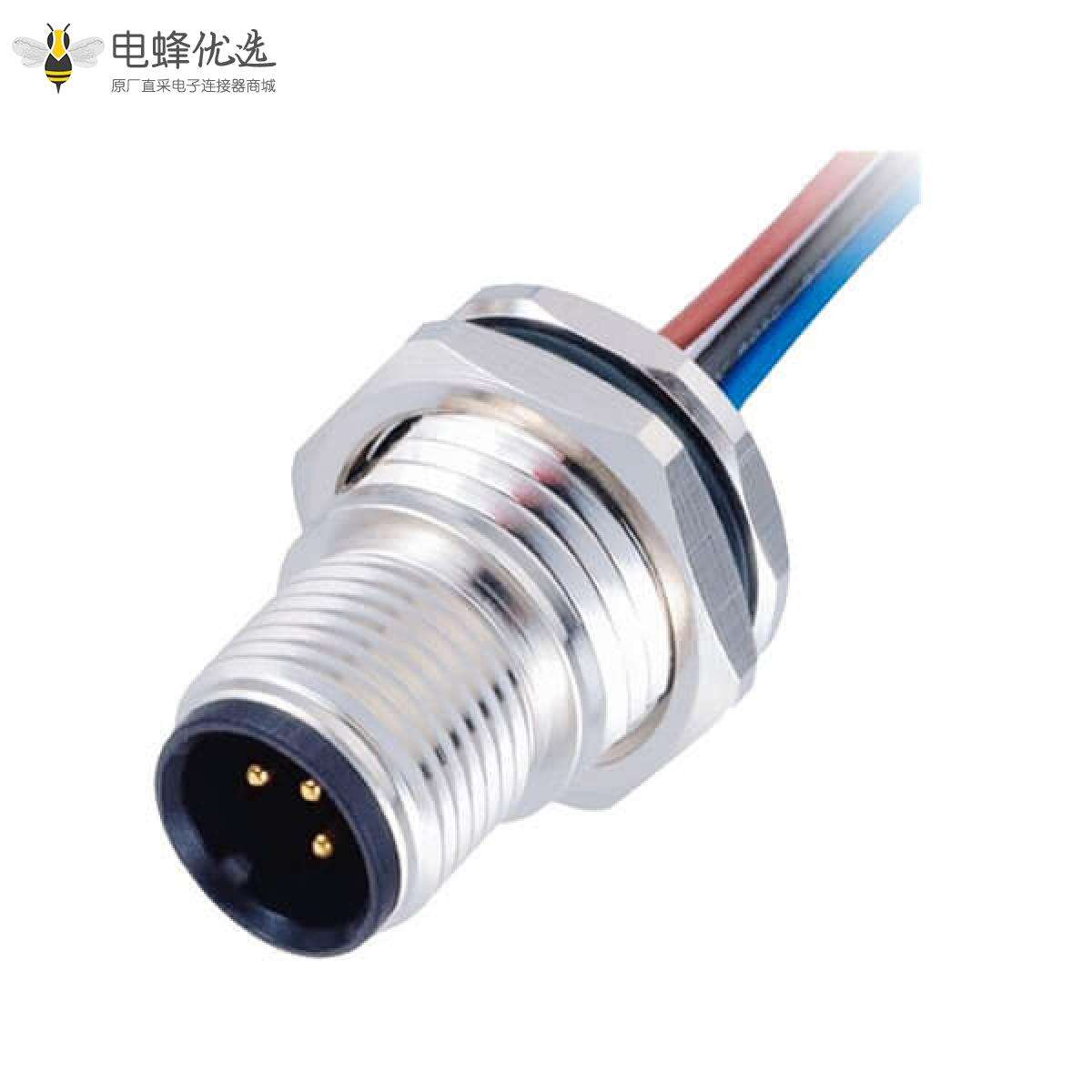 M12,A 编码,板端座子,前锁板,3芯,公,直式,焊线;