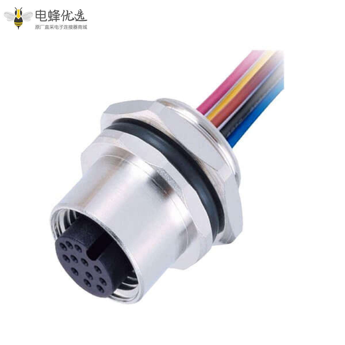 M12,A 编码,板端座子,后锁板,12芯,母,直式,焊线;