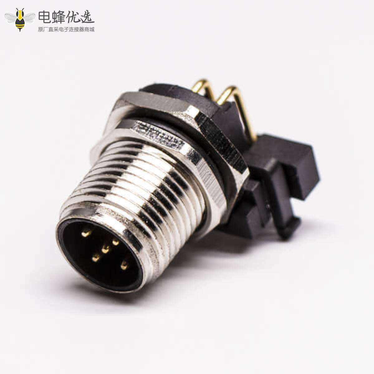 M12,A 编码,板端座子,5芯,公,弯式,PCB;
