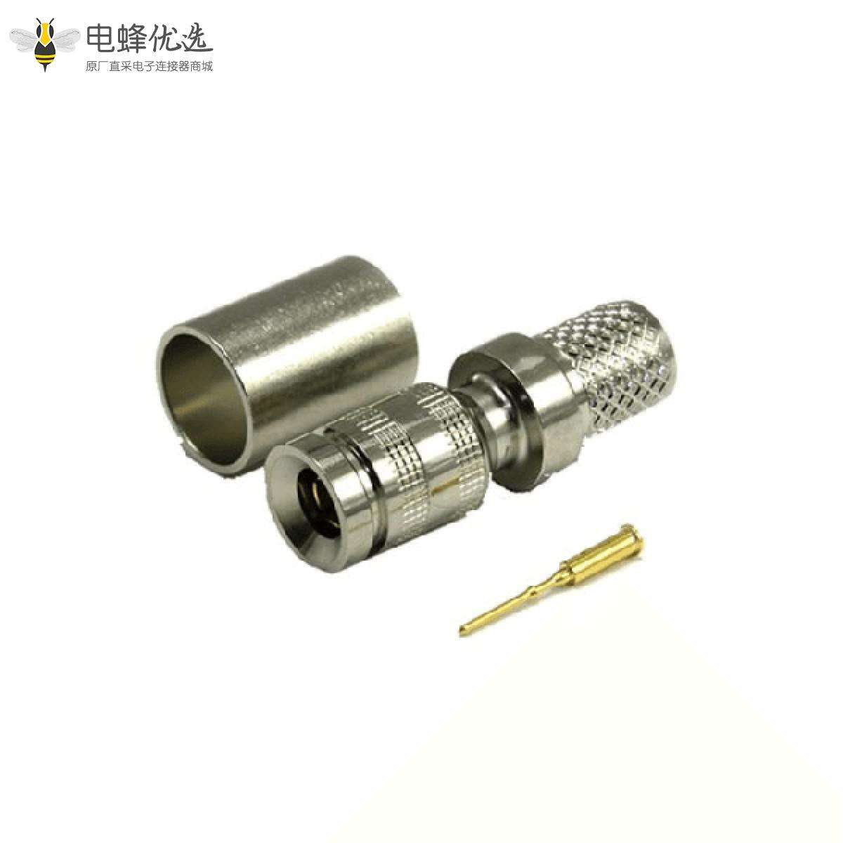 公头,直式,压接,电缆安装,镍,微型,75Ω,卡入式,3GHz,隔板;