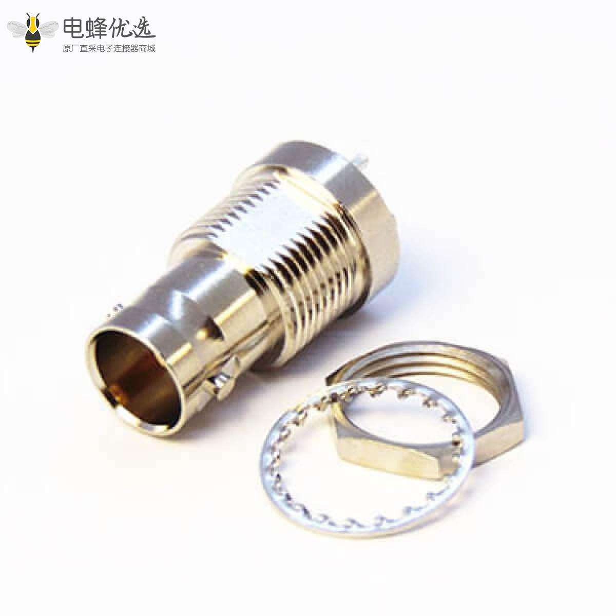 - BNC连接器,母头,直式,穿墙,插板,镀镍,75Ohm;
