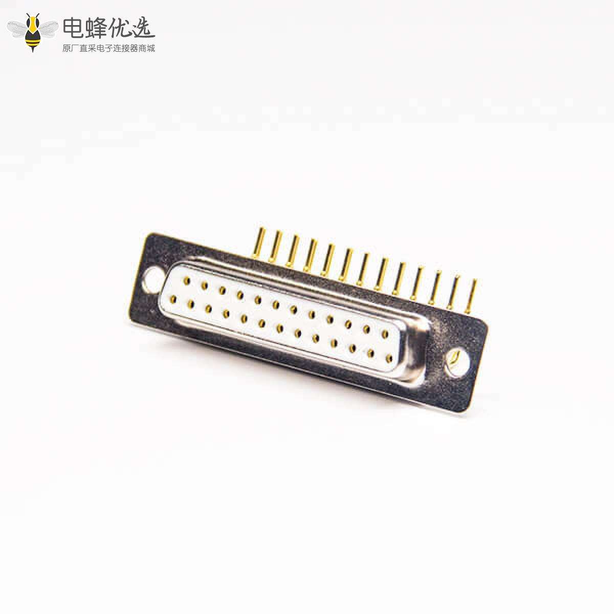 - D-sub连接器,车针型,镀镍,母头,弯式,25 Pin,穿孔式,PCB板,白色胶芯;