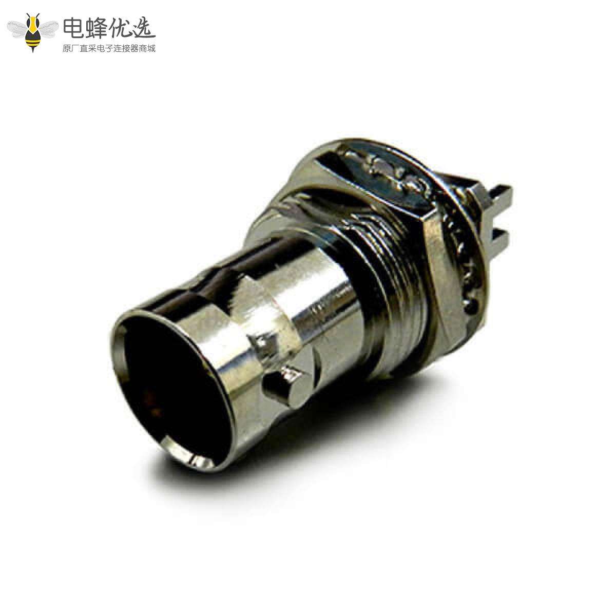 - BNC连接器, 母头, 直式, 面板安装, 前锁穿墙, 75欧姆, 镀镍;