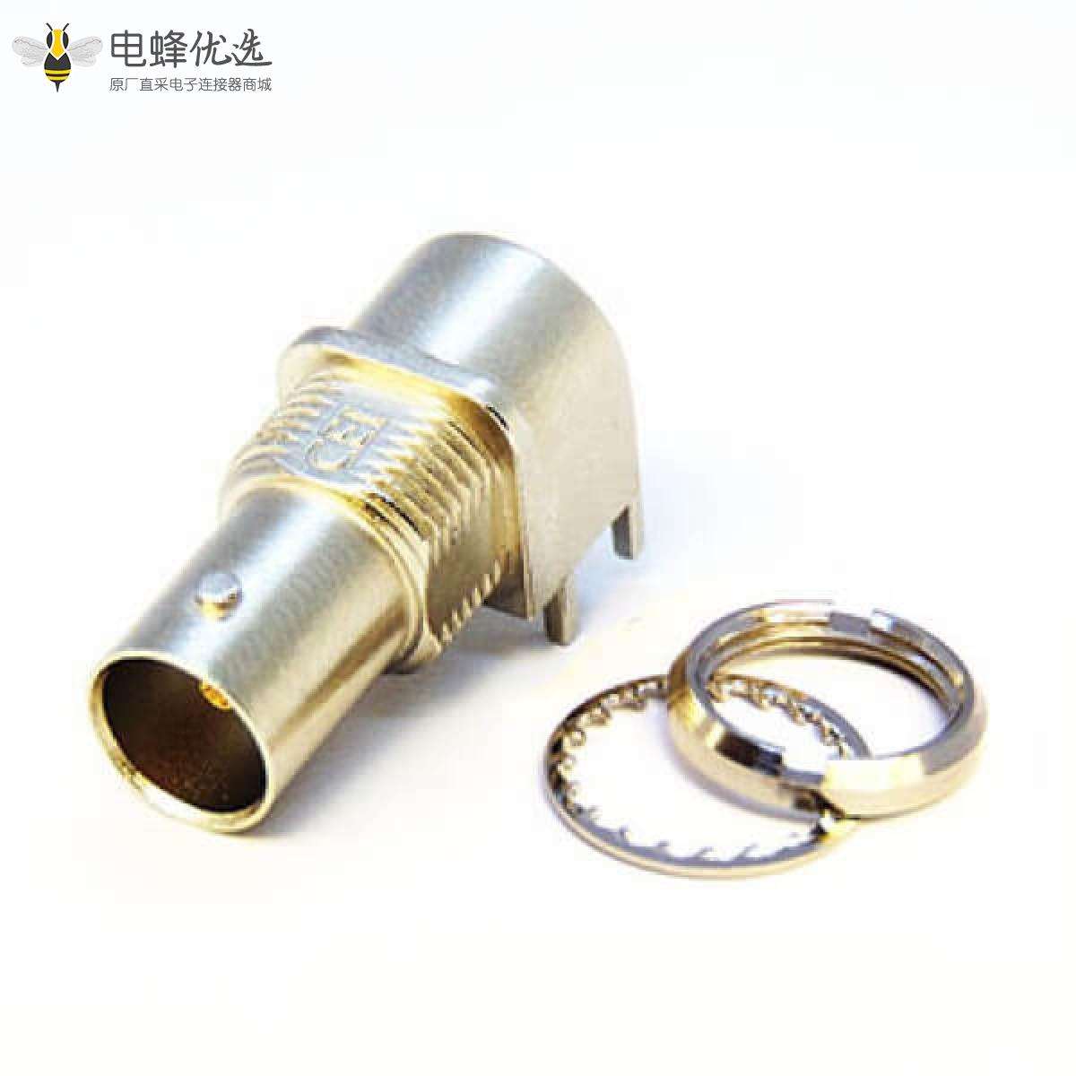 - BNC连接器, 母头, 90度, 接PCB板, 防震, 75欧姆, 镀镍;