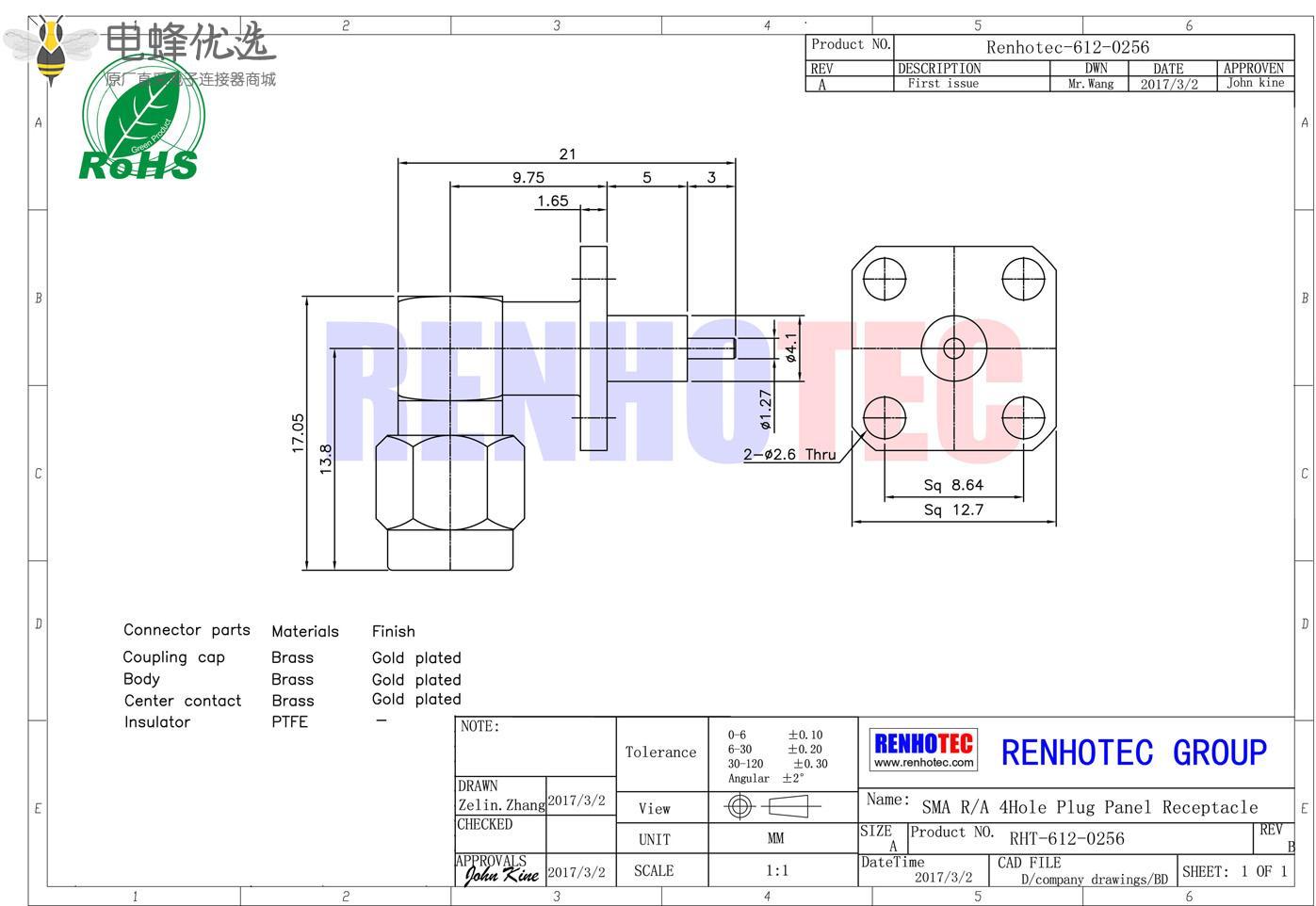 - sma连接器, 面板安装,弯式,公头,4孔法兰;