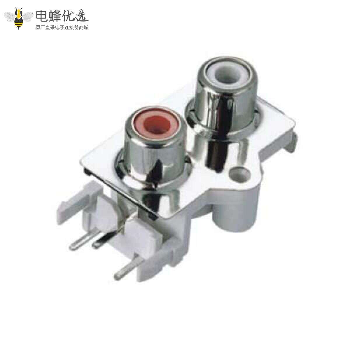 2RCA母转接头双口镀镍90度插座接板音频接头