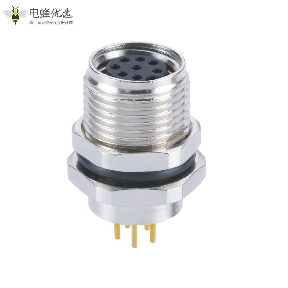- M8, A编码, 8芯,板端插座, 母, 直头, 接PCB板, 前锁板;