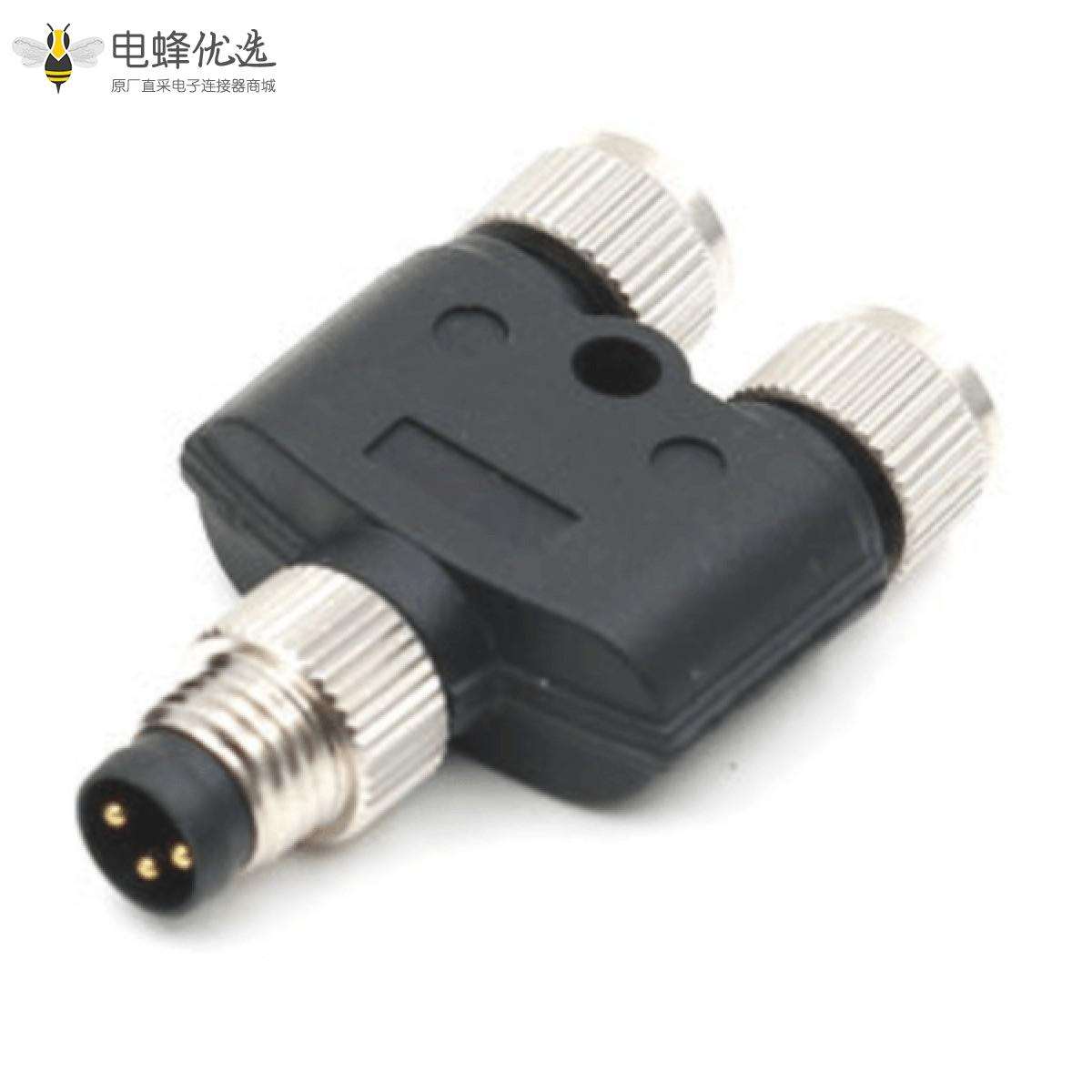 - M8, A编码, 3芯,转接头, 母转公, Y型;