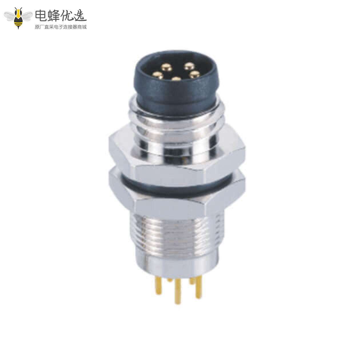 M8 B型焊板插座防水PCB板端后锁公插座5芯工业连接器