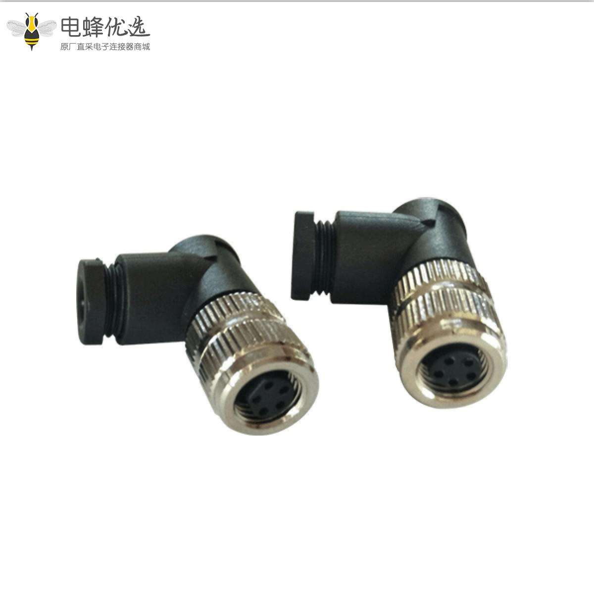 - M8, B编码, 5芯,组装接头, 母, 弯头, 接线, 螺丝锁线, 不带屏蔽;