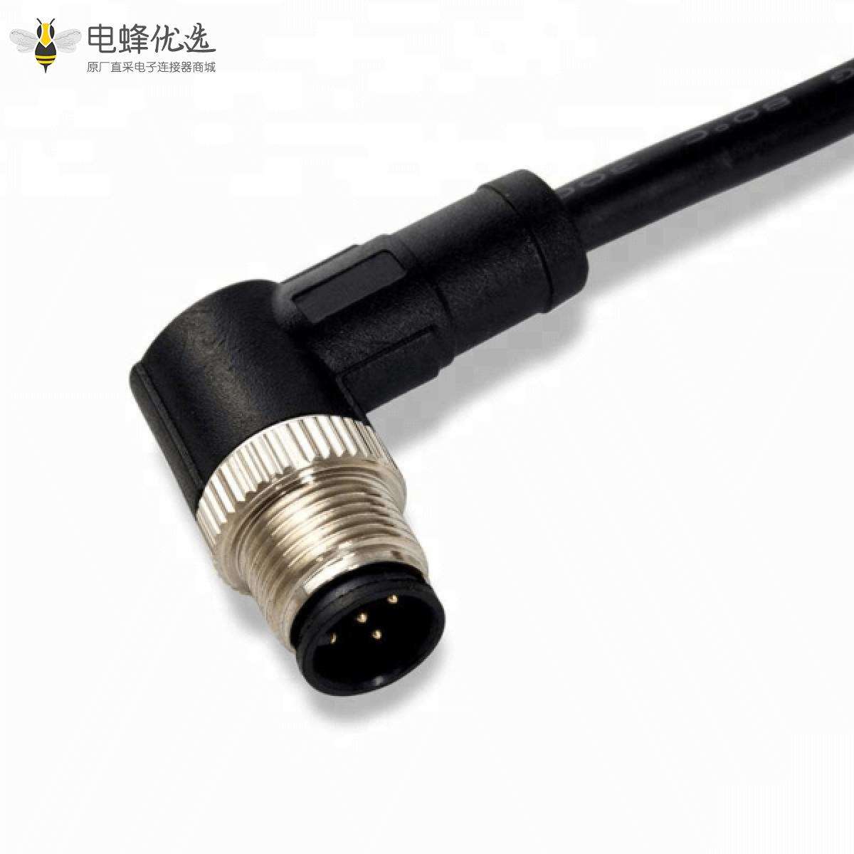 M8注塑弯头传感器A型成型式M8 4芯公头工业连接器接1米24AWG线
