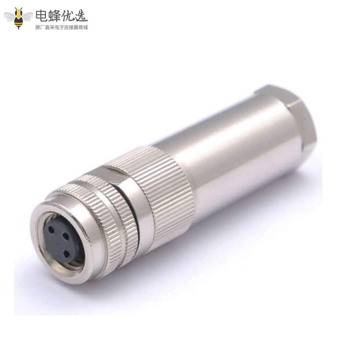 - M8, A编码, 3芯,组装接头, 母, 直头, 接线, 螺丝锁线, 不带屏蔽;