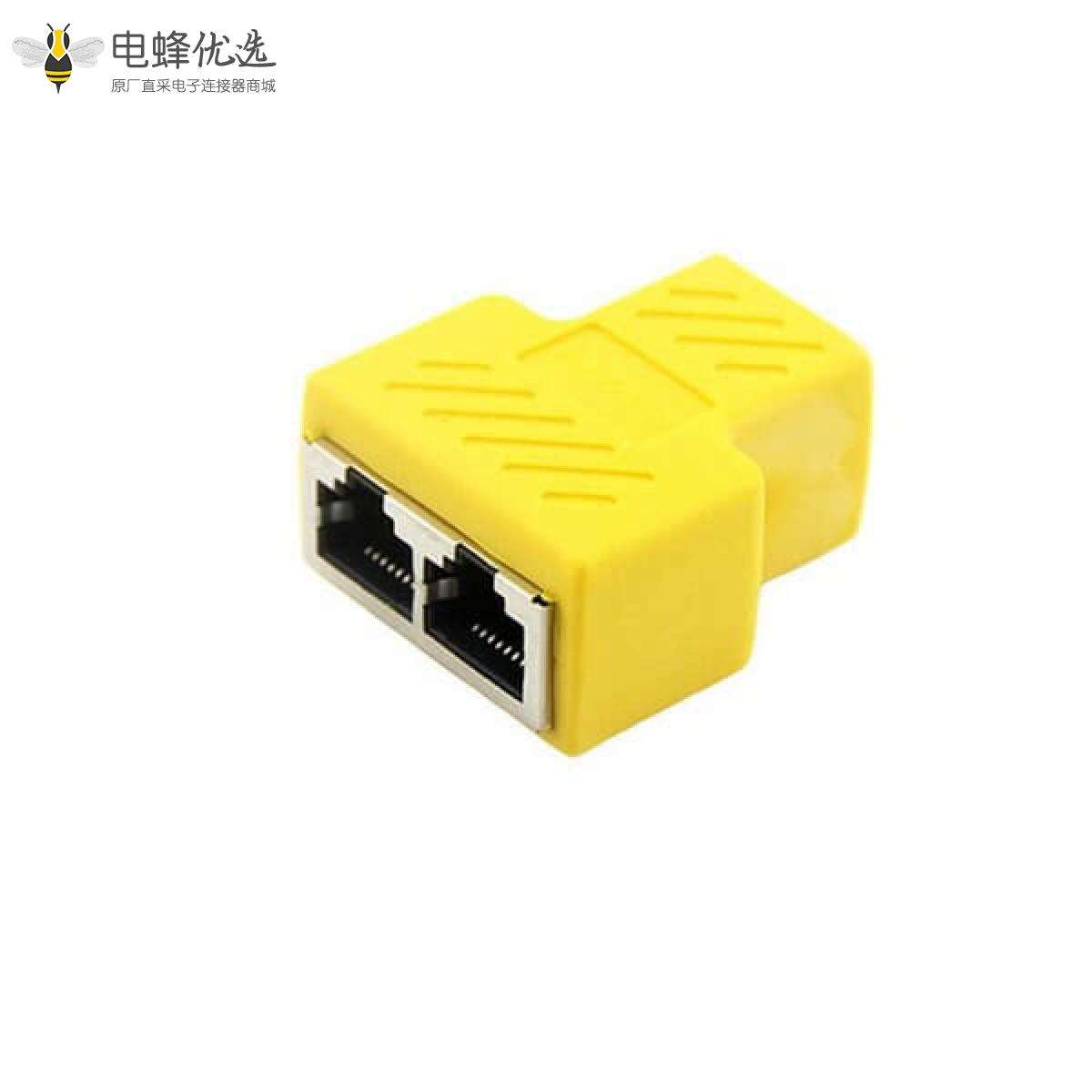 RJ45网络直通,母转母,8P8C,塑料壳,非屏蔽,黄色,Cat6;