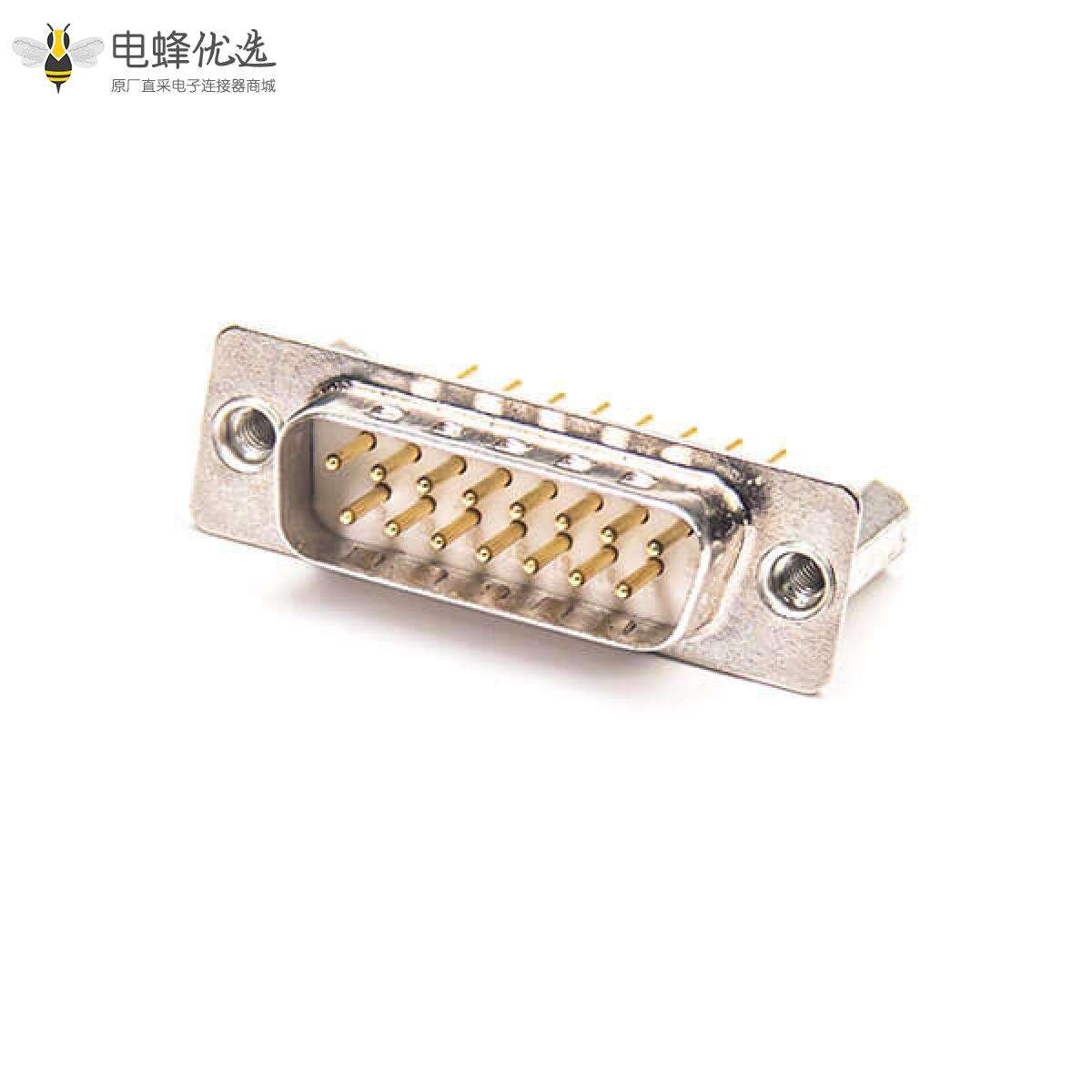 - 车针型D-sub,插头,15针,2排,单端口,直型,车针,镀金,通孔,面板安装,后铆螺母,IP20,无滤波;