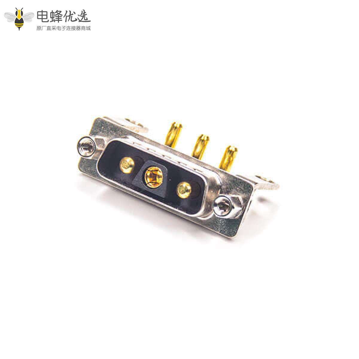 - 混合型D-sub连接器,插头,3V3,1排,单端口,直角型,车针,镀金,通孔,面板安装,前铆螺母,IP20,无滤波;
