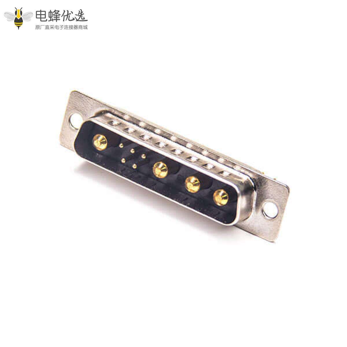 - 混合型D-sub连接器,插头,9W4,1排,单端口,直型,车针,镀金,焊杯,电缆,无螺纹,IP20,无滤波;