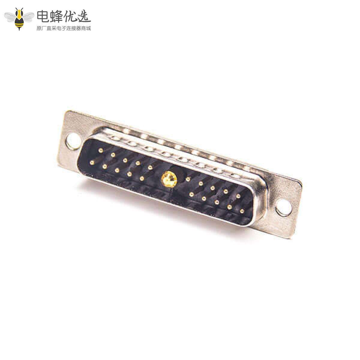 - 混合型D-sub连接器,插头,21W1,2行,单端口,直角型,车针,镀金,焊杯,电缆,无螺纹,IP20,无滤波;