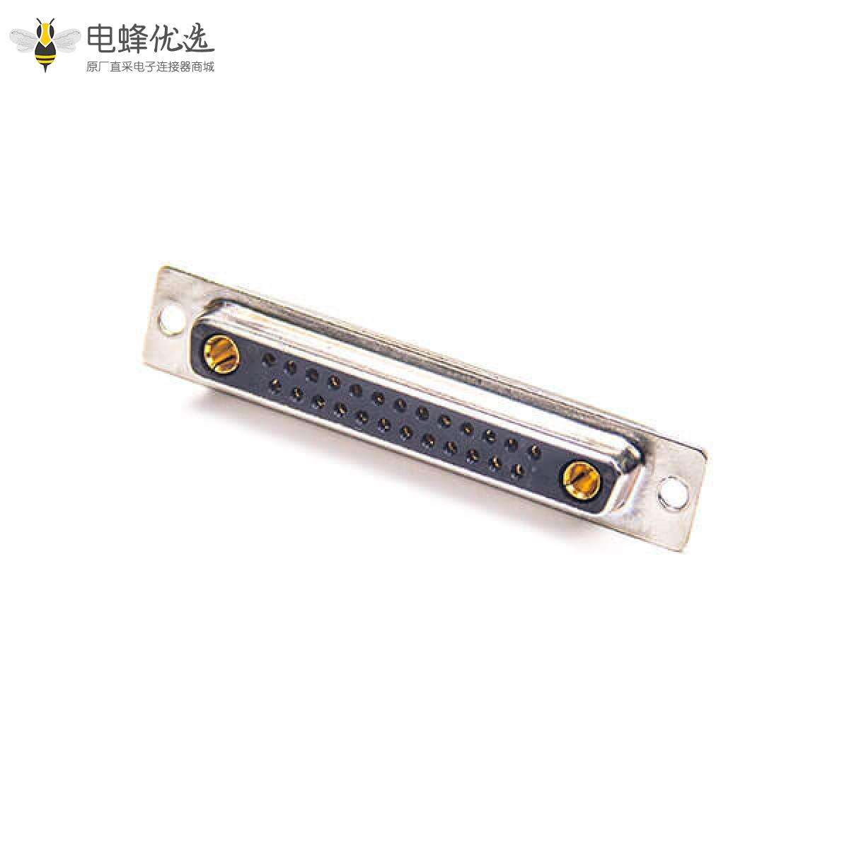 - 混合型D-sub连接器,插座,27W2,2行,单端口,直型,车针,镀金,通孔,面板安装,无螺纹,IP20,无滤波;