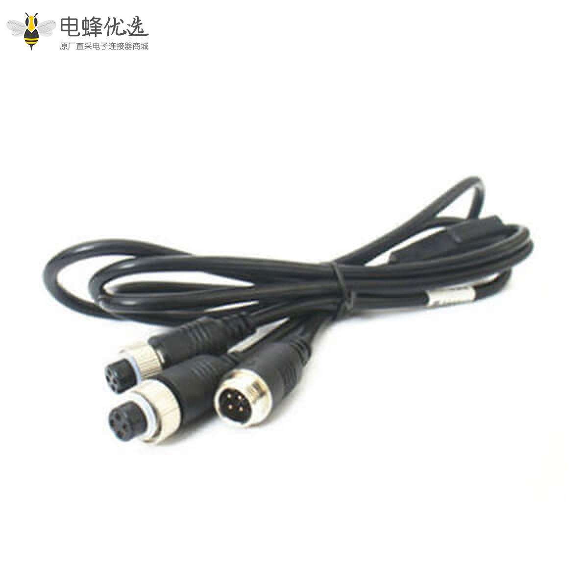 4芯航空电缆线GX12防水公转母分流器电缆延长线30CM