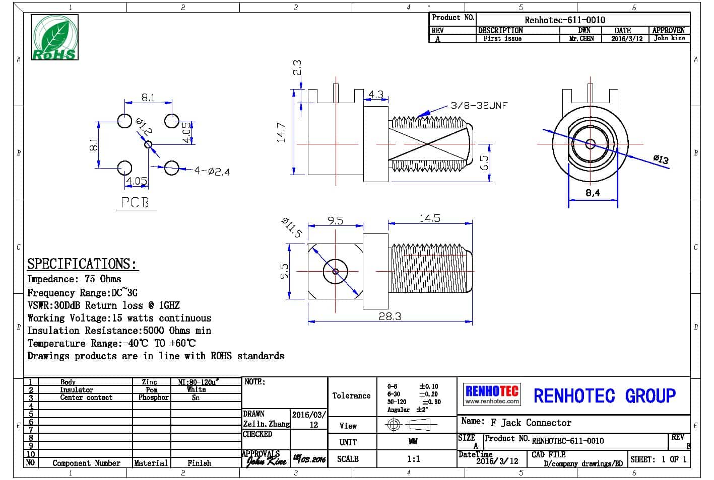 - 中心接触电阻: ≦ 10 mΩ (Milliohms max.)