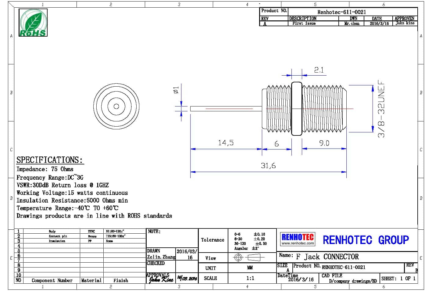 - 中心接触电阻: ≦ 10 mΩ (Milliohms max.)