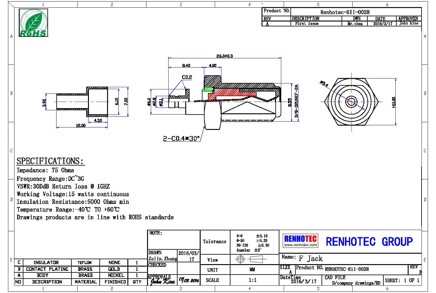 - 中心接触电阻: ≦ 10 mΩ (Milliohms max.)