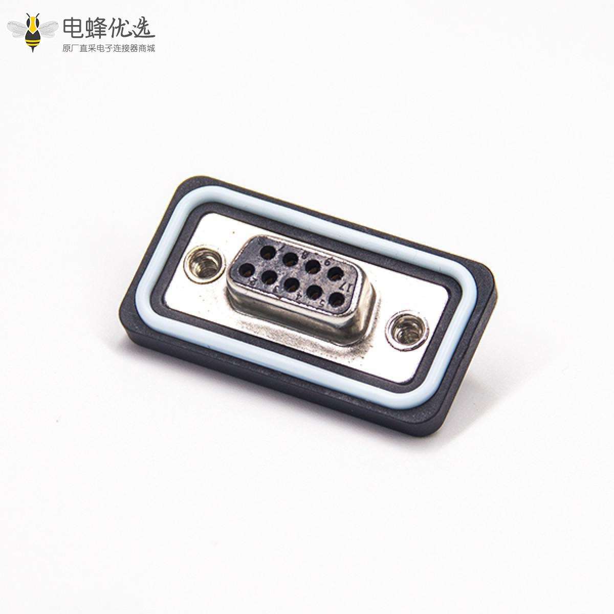 - 防水D-sub,插座,9针,2排,单端口,直型,车针,镀金,焊杯,电缆,后铆螺母,IP67,不带滤波;