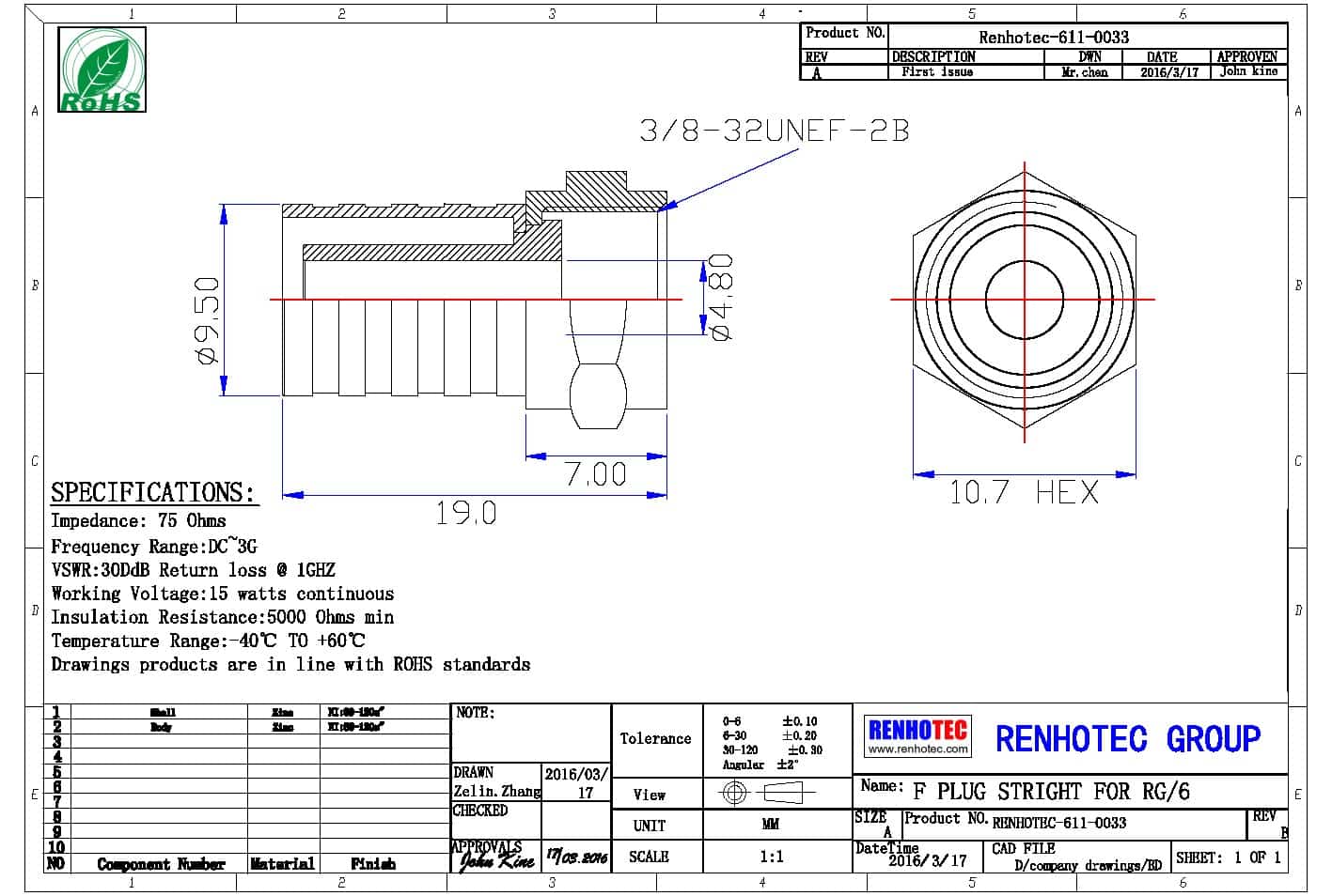 - f连接器,同轴线缆,公头,75欧,直式,RG11,注塑接头;