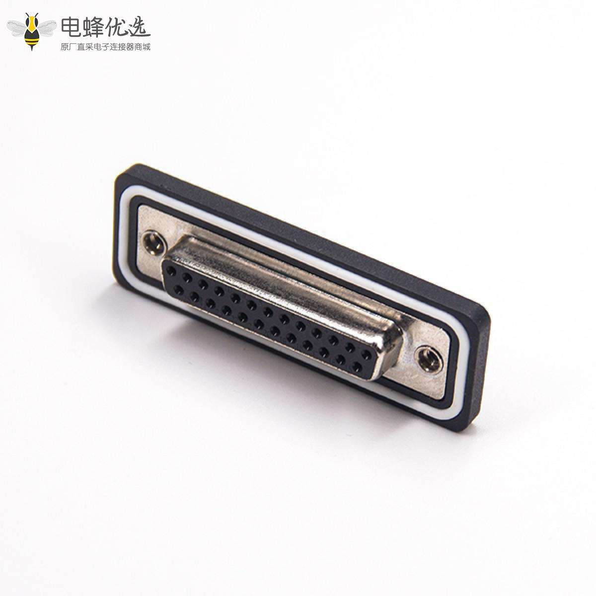 - 防水D-sub,插座,25针,2排,单端口,直型,车针,镀金,焊杯,电缆,后铆螺母,IP67,不带过滤;