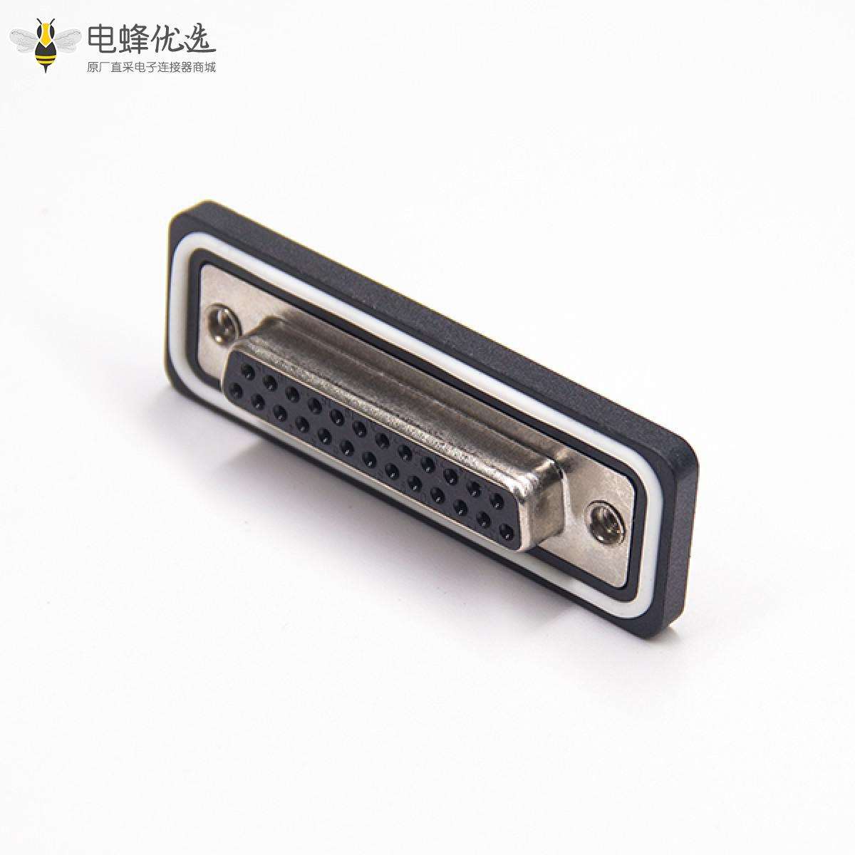 - 防水D-sub,插座,25针,2排,单端口,直型,车针,镀金,PCB安装,后铆螺母,IP67,不带过滤;