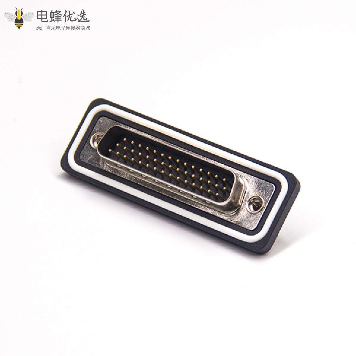 - 防水D-sub,插头,44针,3排,单端口,直型,车针,镀金,垂直PCB安装,后铆螺母,IP67,不带滤波;