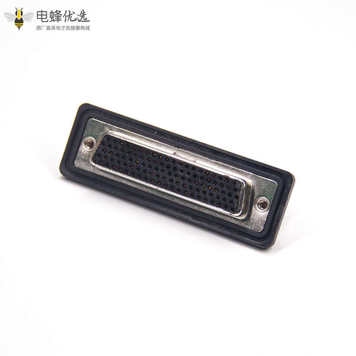 - 防水D-sub,插座,104针,5排,单端口,车针,镀金,直角,PCB安装,后铆螺母,IP67,不带滤波;