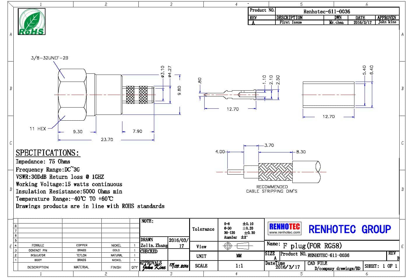 - 阻抗:75 ohm