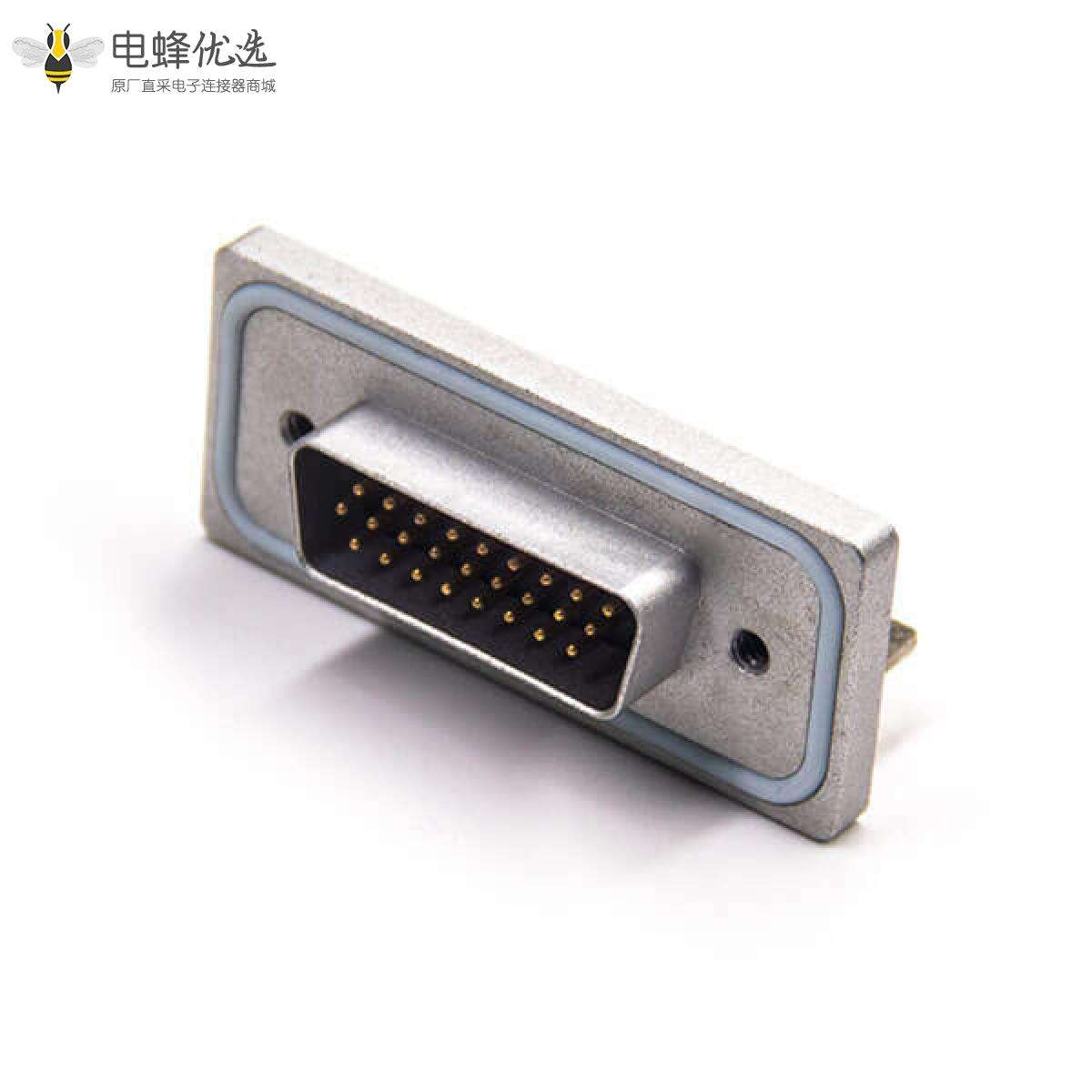 - 防水D-sub,插头,26针,2排,单端口,车针,镀金,直角,PCB安装,后铆螺母,IP67,不带滤波;