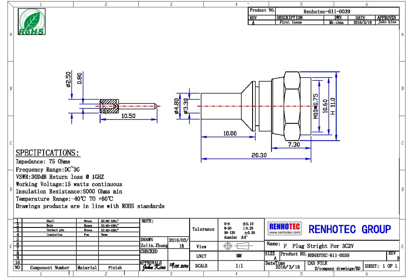 - f连接器,同轴线缆,公头,75欧,直式,3C2V;