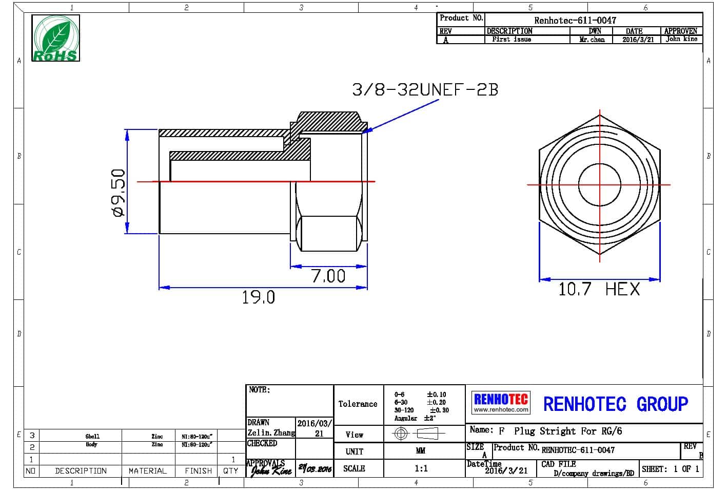 - f连接器,同轴线缆,公头,75欧,直式,RG6;