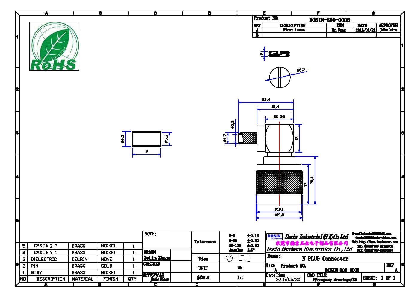 - n连接器,同轴线缆,公头,50欧,弯式, 压接,RG58, RG59, RG6, RG174, RG213;