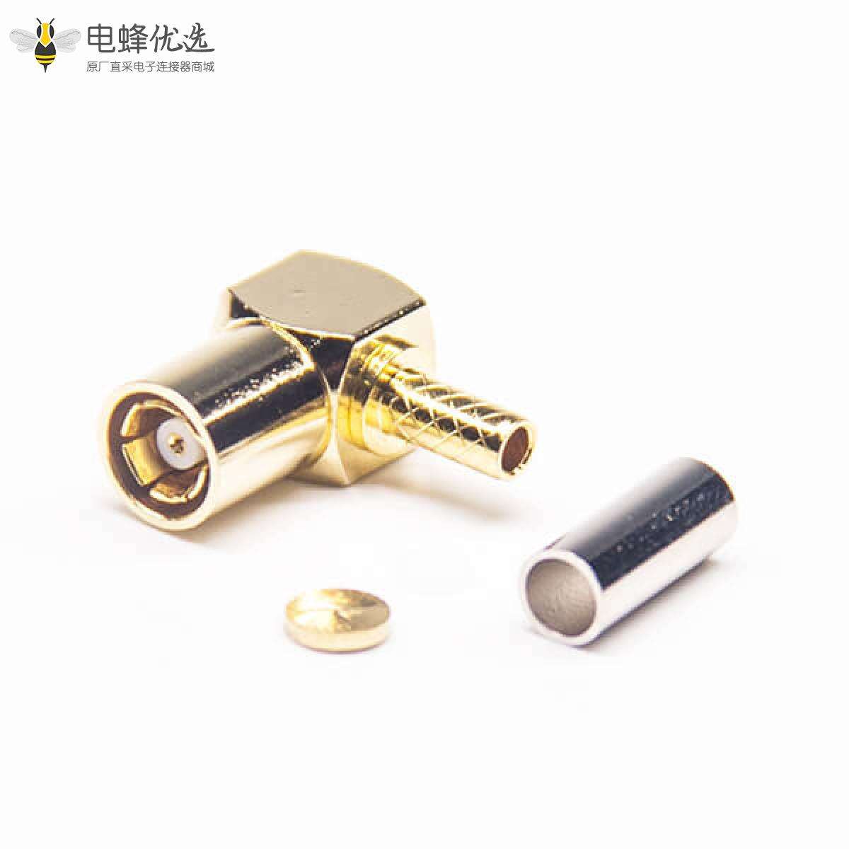 - SMB母头,弯式/90度, 压接,RG174/RG316, 铜,镀金;