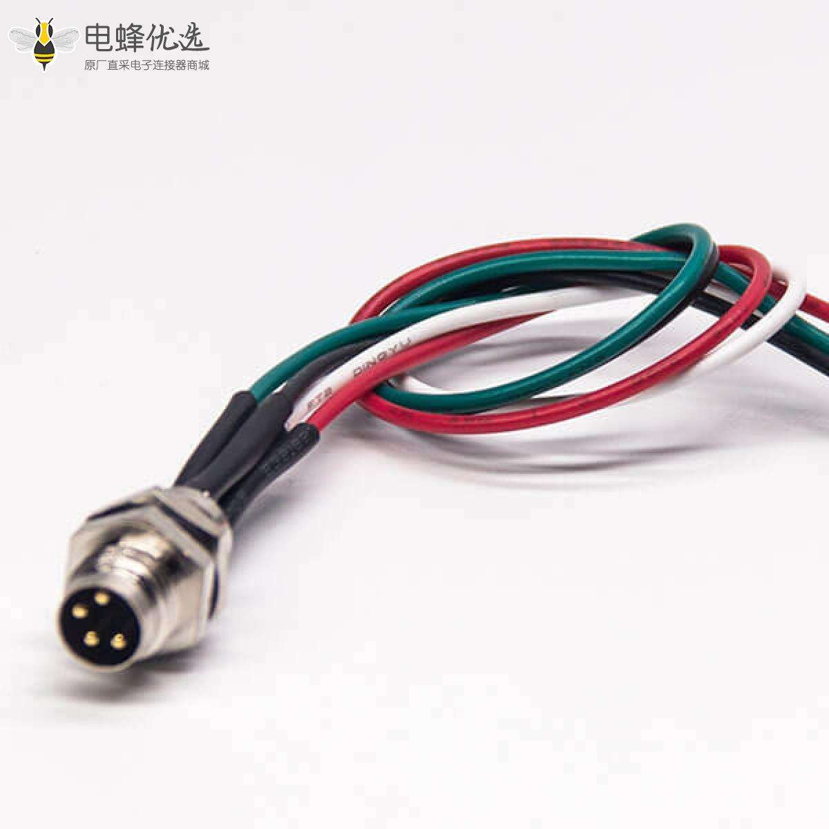 M8,A 编码,板端座子,后锁板,4芯,公头,直式,焊线;
