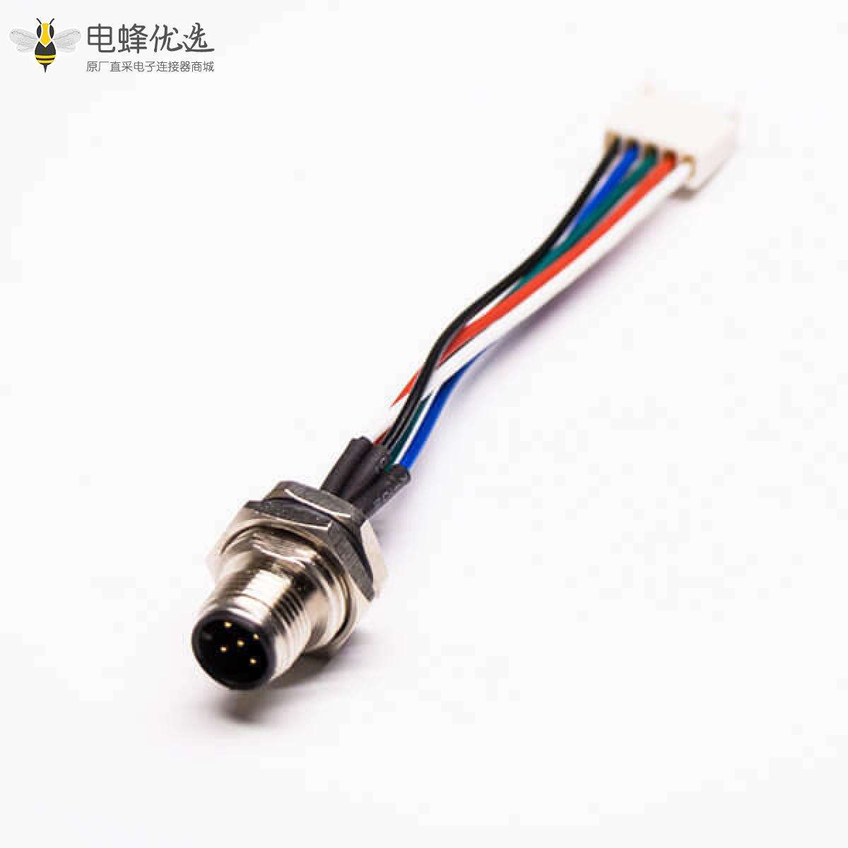 M12,A 编码,板端座子,前锁板,5芯,公头,直式,焊线;