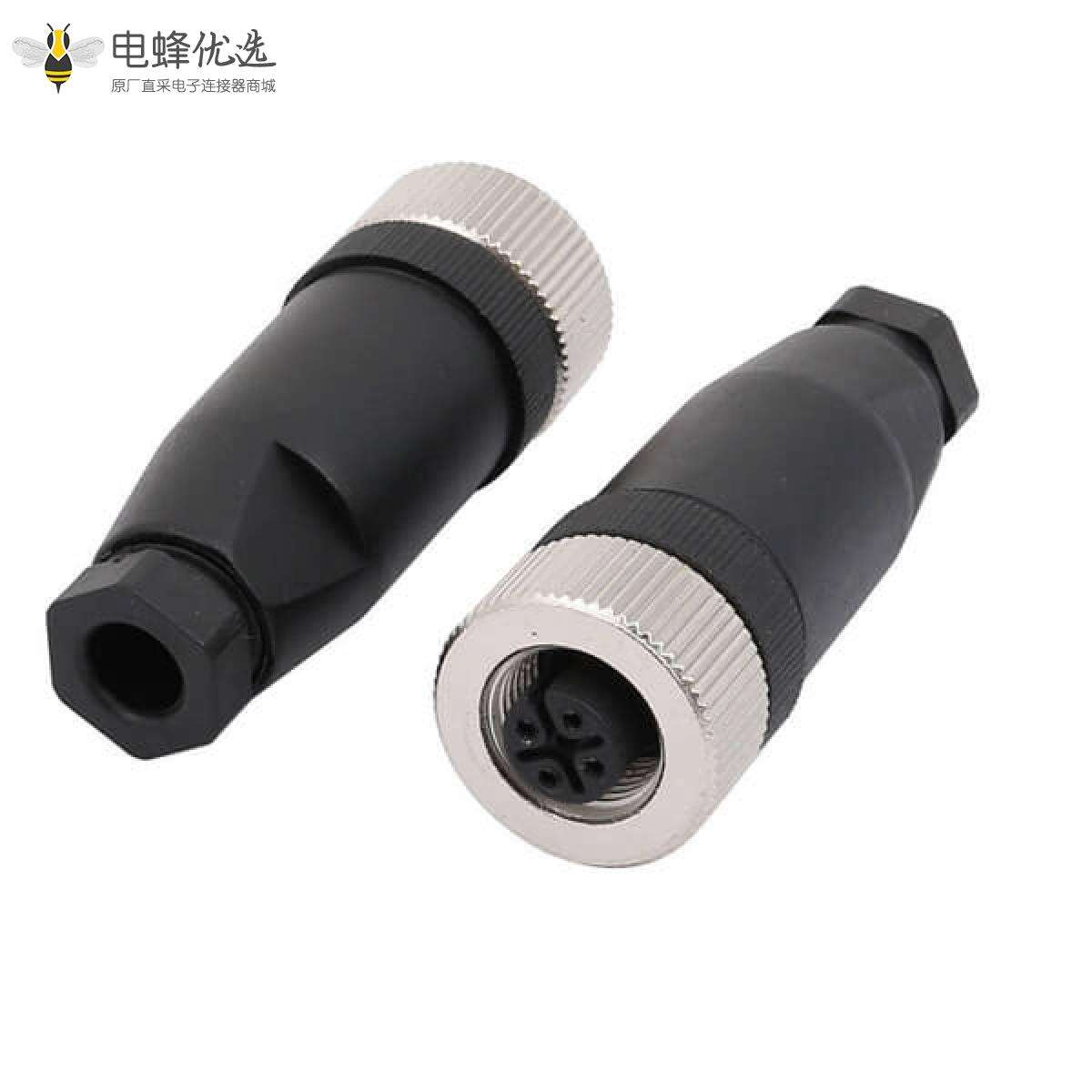 M12 组装接头4芯母头现场安装螺丝锁线接头2PCS