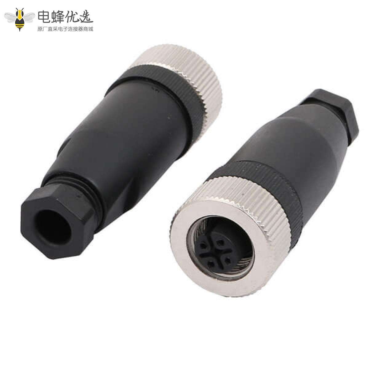 - M12,A 编码,现场组装式,5芯,母头,直式,螺丝锁线,不带屏蔽;