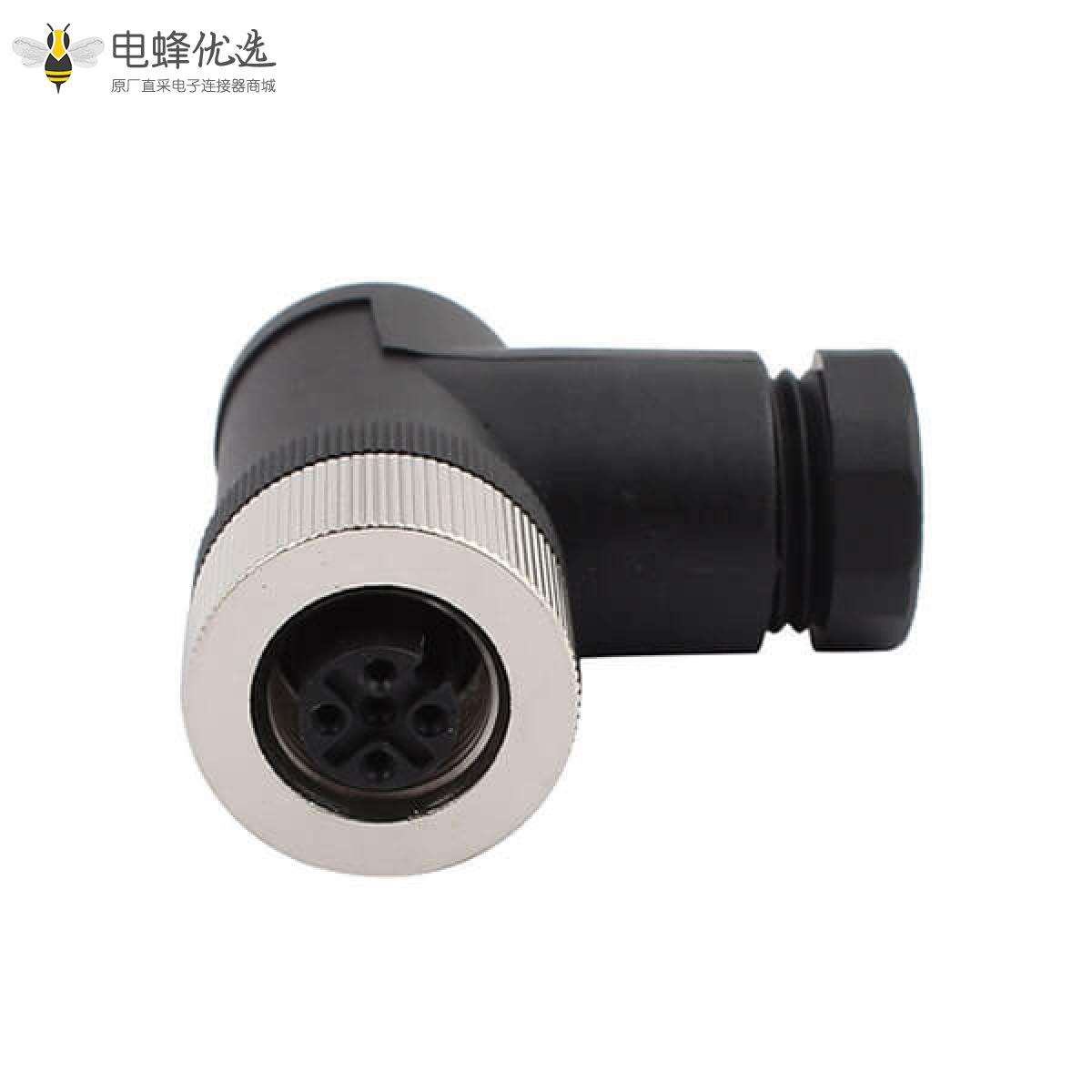 M12,A 编码,现场组装式,4芯,母头,弯式,螺丝锁线,不带屏蔽;