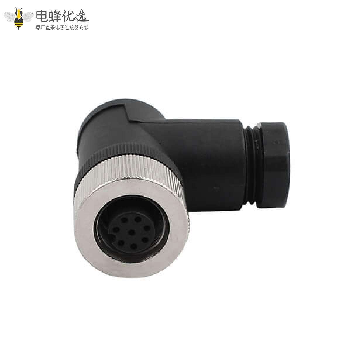 M12,A 编码,现场组装式,8芯,母头,弯式,螺丝锁线,不带屏蔽;