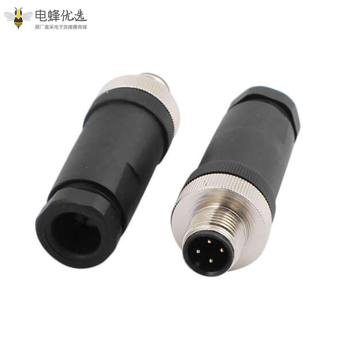 装配式M12 4芯公头塑料外壳不带屏蔽 5PCS/包
