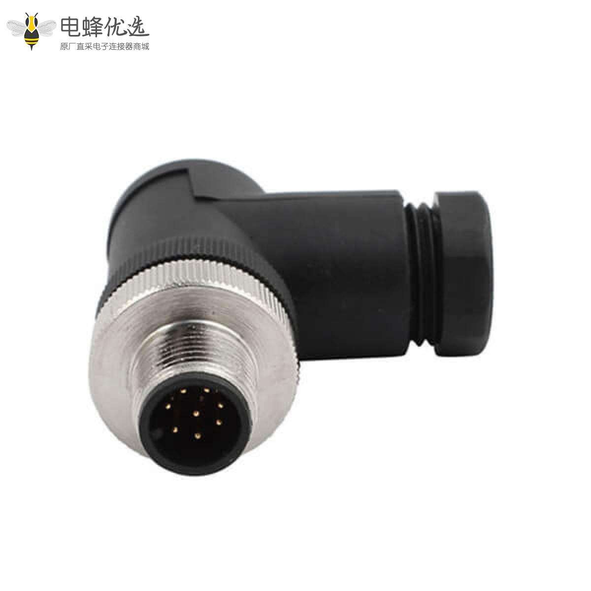 - M12,A 编码,现场组装式,8芯,公头,弯式,螺丝锁线,不带屏蔽;