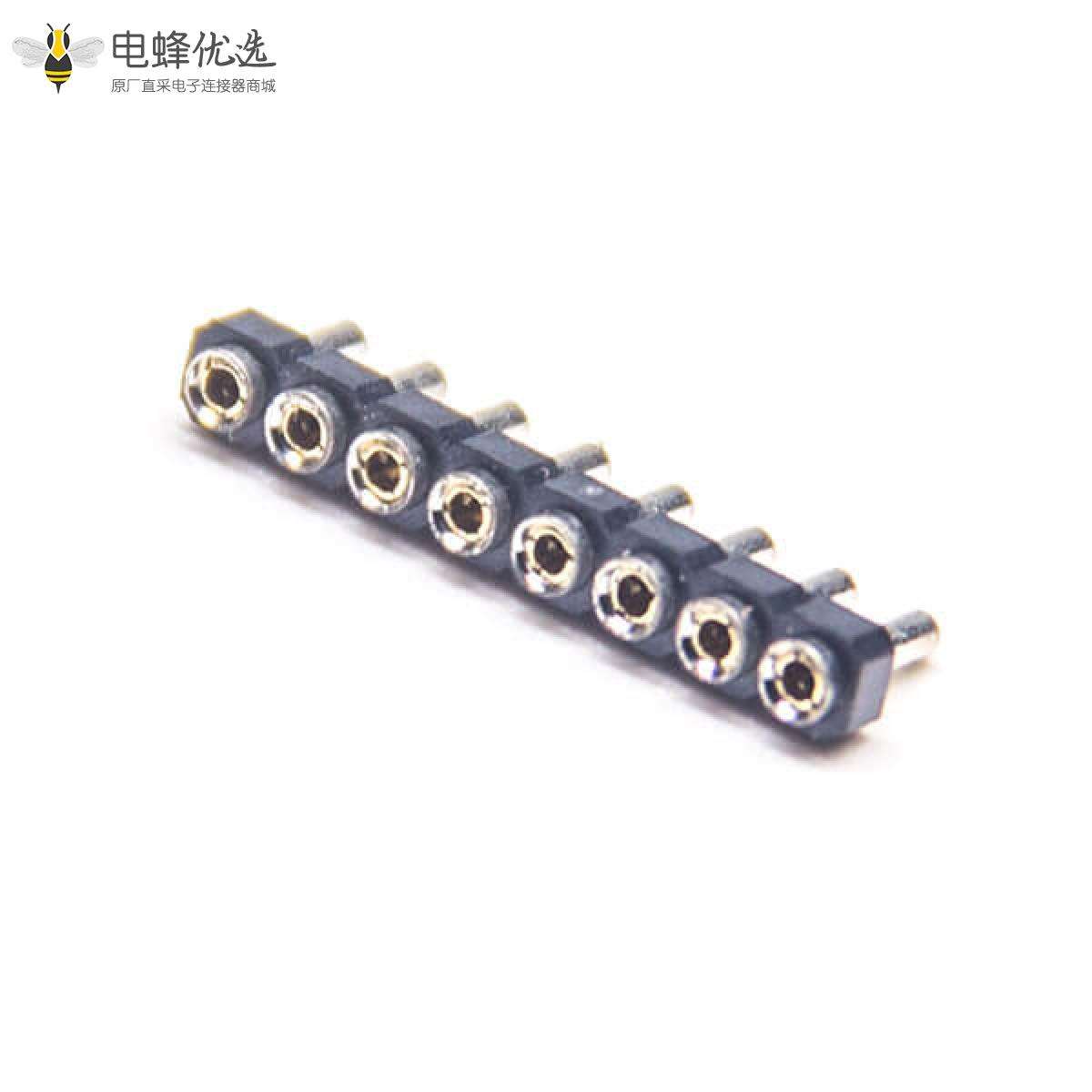 - 排母连接器,母头,直式,180度,8Pin,2.0mm,单排,圆孔,插板,焊接,镀锡,黑色,H1.2mm,圆形;