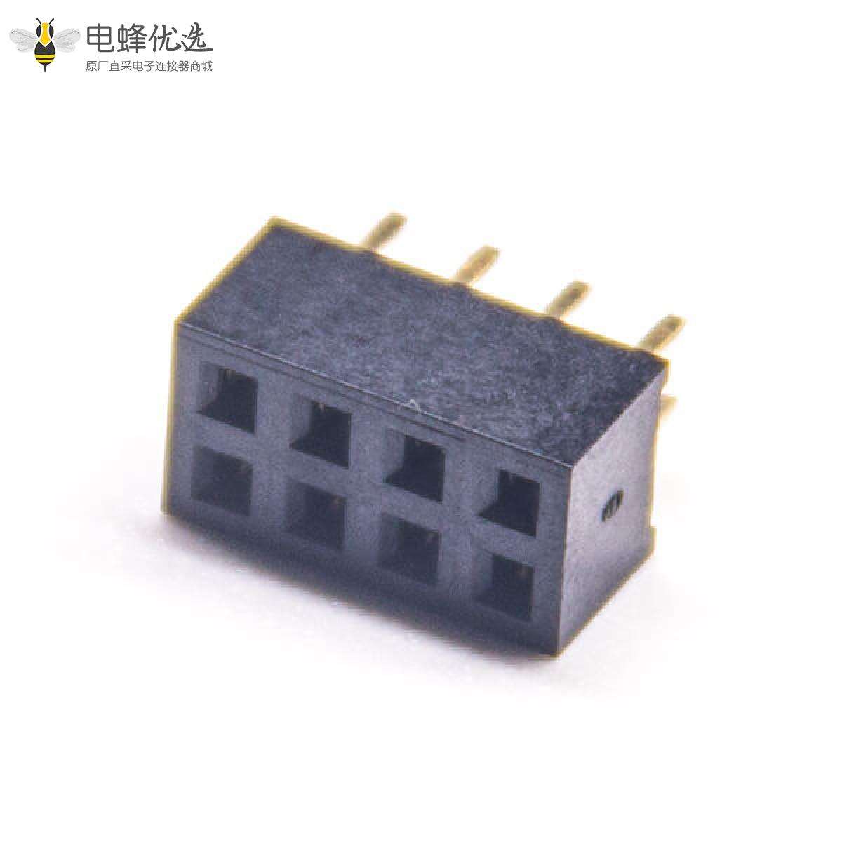 - 排母连接器,母头,直式,180度,4Pin,2.0mm,双排,插板,焊接,镀金,黑色,H4.0mm,方形;